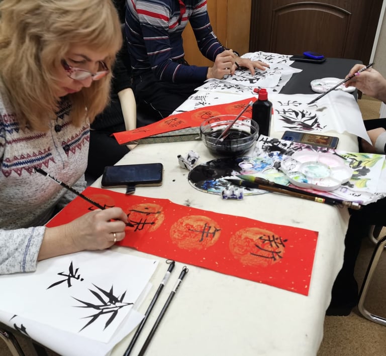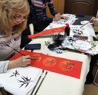 A glimpse into our Chinese calligraphy workshop, showcasing art, students, and moments of learning.